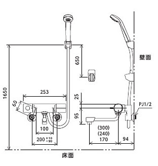 浴室用蛇口[壁][シャワー専用][サーモスタット混合水栓][eシャワー][スパウトなし][一般地]