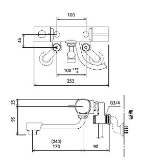 浴室用蛇口[壁][浴槽・洗い場兼用][サーモスタット付シャワーバス混合水栓][取替専用][接続アダプター付][eシャワー][一般地]