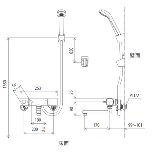 浴室用蛇口 楽付王[壁][サーモスタット付シャワー][eシャワー][一般地]