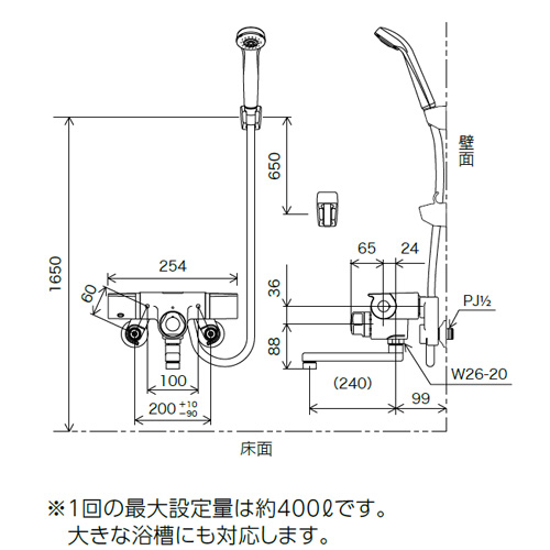 浴室用蛇口[壁][定量止水付サーモスタット付シャワー][スパウト240mm][一般地]