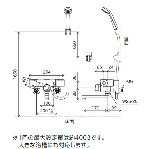 浴室用蛇口[壁][定量止水付サーモスタット付シャワー][スパウト170mm][寒冷地]