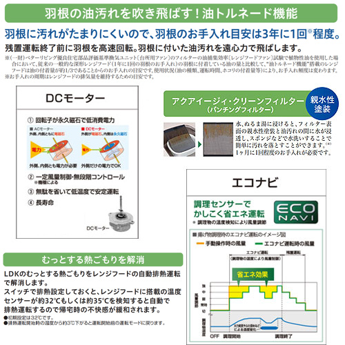 ・調理物の温度を検知し自動的に風量を選択する「AIエコナビ」機能搭載