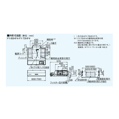 ・換気風量(50/60Hz):650〜230立方メートル/h /650〜210立方メートル/h