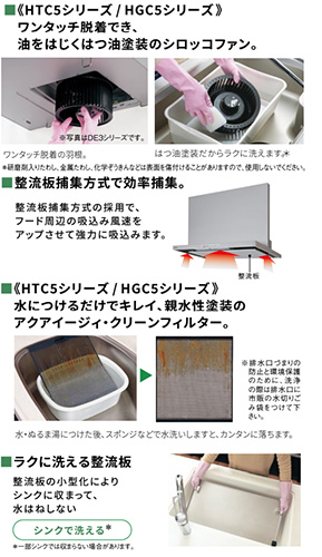 ・フード内をフラット形状にし、お掃除性を向上