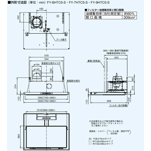 H=565mm FY-MH756D-S(対応吊戸棚高さ:600mm)