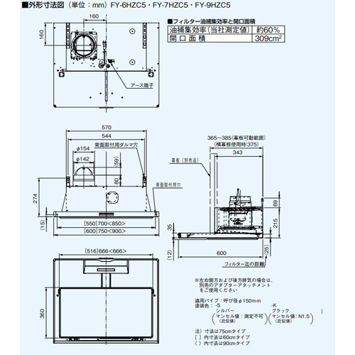 H=565mm FY-MH756D(対応吊戸棚高さ:600mm)