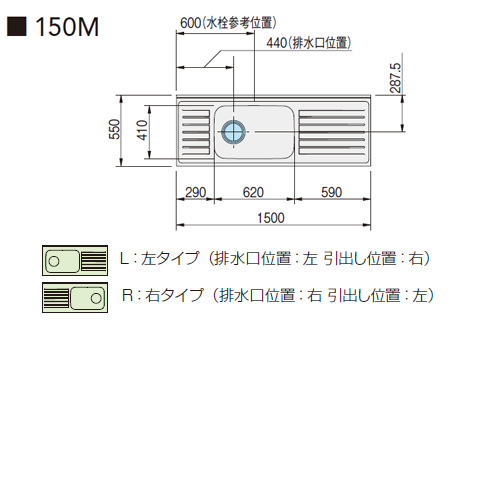 左タイプ(L) 排水位置:左/引出し位置:右