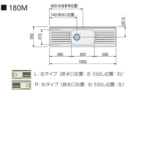 流し台[クリンプレティ][木製キャビネット][間口180cm][奥行55cm][ペールウッド]