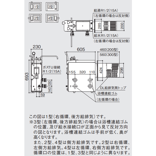 本体循環口の仕様、給排気仕様のご確認をお願い致します。