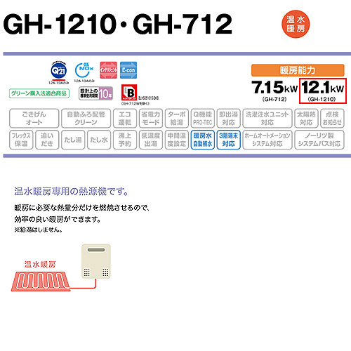 熱源機[台所リモコンセット][2温度][6P熱動弁内蔵][2-6][暖房能力12.1kW][屋外壁掛型][前面排気][暖房専用][プロパンガス]