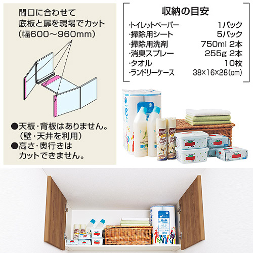 間口にピッタリ設置できる天袋。幅調整は簡単です。
