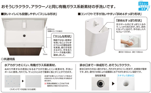 おそうじラクラク。新素材の、スリムな手洗い。
