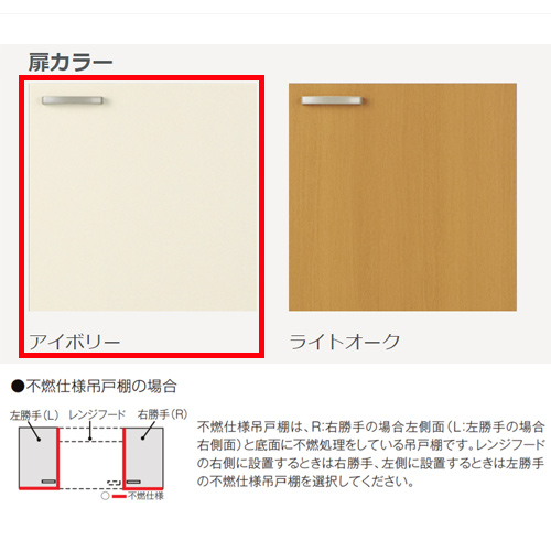 レンジフード右側に設置する場合は右勝手(R)仕様、左側に設置する場合は左勝手(L)仕様を選択して下さい。