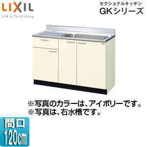流し台(1段引出し) セクショナルキッチンGKシリーズ[木製キャビネット][間口120cm][アイボリー]