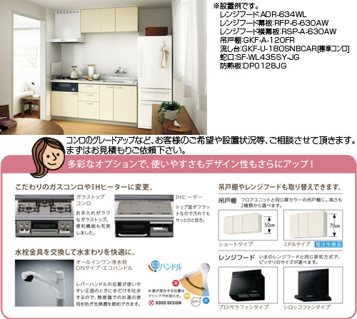 ・グレードアップ商品:IHコンロ3種(パナソニック製、日立製)、ガラストップガスコンロ3種(リンナイ製)