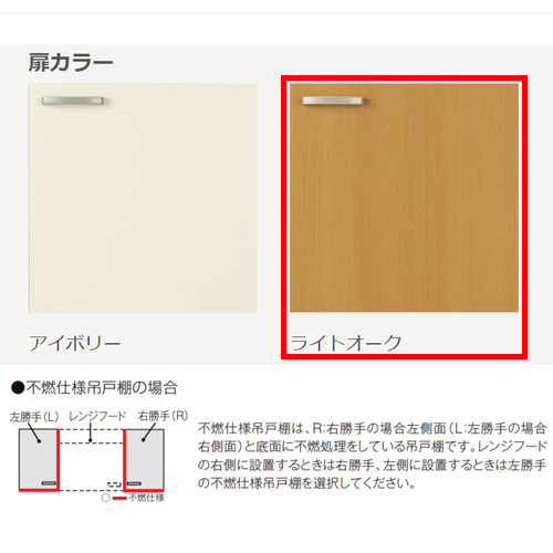レンジフード右側に設置する場合は右勝手(R)仕様、左側に設置する場合は左勝手(L)仕様を選択して下さい。