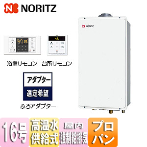 ガス給湯器[浴室・台所リモコン+ふろアダプターセット][屋内壁掛型][上方排気][強制給排気][高温水供給式][クイックオート][16号][15A][プロパンガス][わからない]