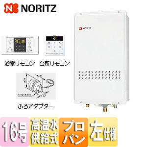 ガス給湯器[浴室・台所リモコン+ふろアダプターセット][PS扉内設置型][後方排気][高温水供給式][クイックオート][16号][15A][プロパンガス][ふろアダプター左仕様]