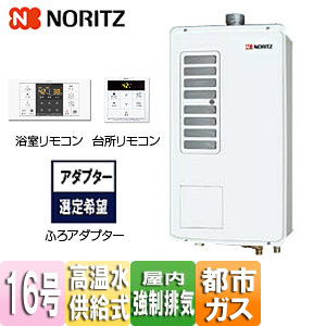 ガス給湯器[浴室・台所リモコン+ふろアダプターセット][屋内壁掛型][上方排気][強制排気][高温水供給式][クイックオート][16号][15A][都市ガス][わからない]
