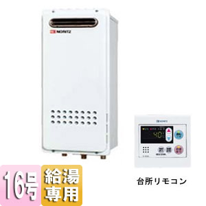 ガス給湯器[台所リモコンセット][屋外壁掛型][PS設置型][給湯専用][オートストップ][スリム][16号][15A][プロパンガス]