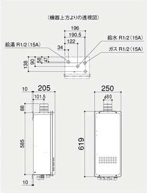 ガス給湯器[台所リモコンセット][PS扉内設置型][上方排気][給湯専用][オートストップ][スリム][16号][15A]
