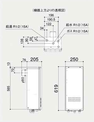 ガス給湯器[本体のみ][PS扉内設置型][後方排気][給湯専用][スリム][16号][15A]