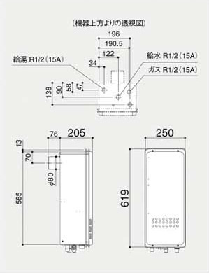 ガス給湯器[台所リモコンセット][PS扉内設置型][後方排気][給湯専用][オートストップ][スリム][16号][15A]
