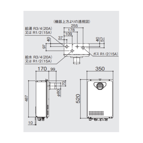 ガス給湯器[台所リモコンセット][PS扉内設置型][前面排気][延長不可][給湯専用][16号][15A][都市ガス]