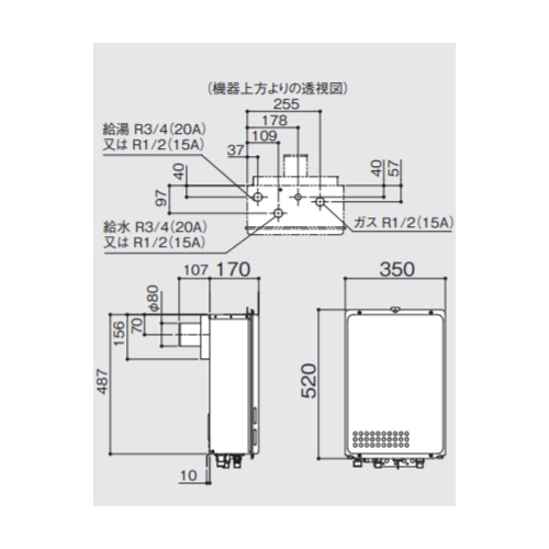 ガス給湯器[本体のみ][PS扉内設置型][後方排気][給湯専用][16号][15A]