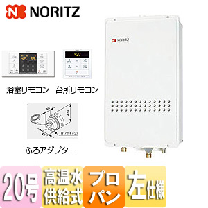 ガス給湯器[浴室・台所リモコン+ふろアダプターセット][PS扉内設置型][後方排気][高温水供給式][クイックオート][20号][20A][プロパンガス][ふろアダプター左仕様]