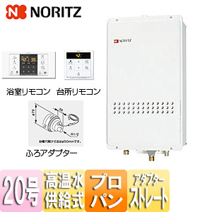 ガス給湯器[浴室・台所リモコン+ふろアダプターセット][PS扉内設置型][後方排気][高温水供給式][クイックオート][20号][20A][プロパンガス][ふろアダプターストレート]