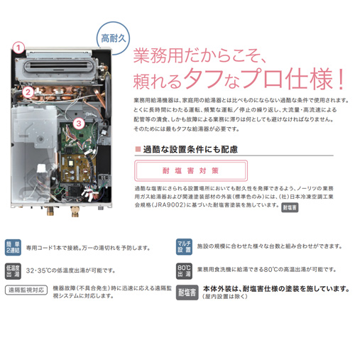 ガス給湯器[業務用][台所リモコンセット][屋外壁掛型][給湯専用][32号][プロパンガス]