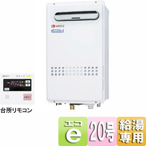 ガス給湯器[エコジョーズ][台所リモコンセット][屋外壁掛型][PS設置型][給湯専用][オートストップ][スリム][20号][20A][プロパンガス]