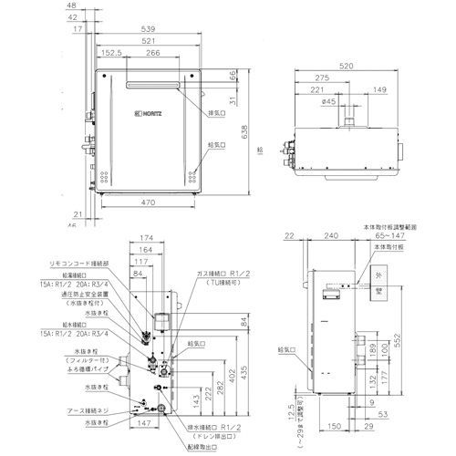 ・給水給湯接続:15A