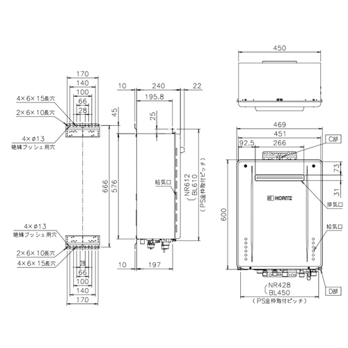 ※アルコーブ排気カバーを取り付けることによりPSアルコーブ設置ができます。
