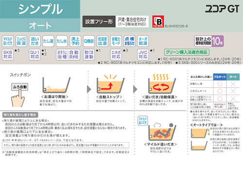 ふろ給湯器の設置場所を選ばない「設置フリー形」。