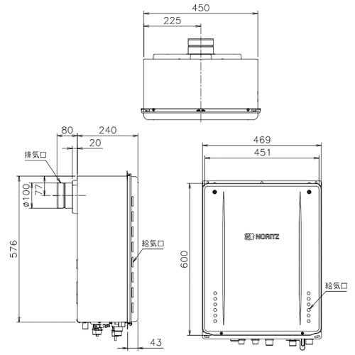 ガスふろ給湯器[浴室・台所リモコンセット][PS扉内設置型][後方排気][シンプル][オート][20号][20A]