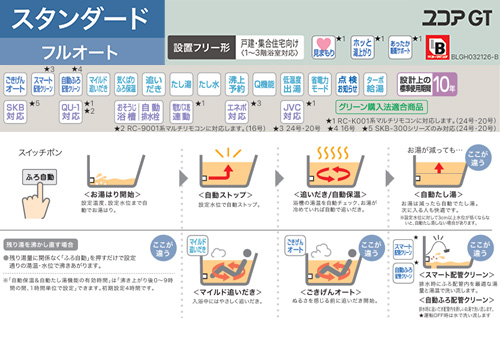 ふろ給湯器の設置場所を選ばない「設置フリー形」。