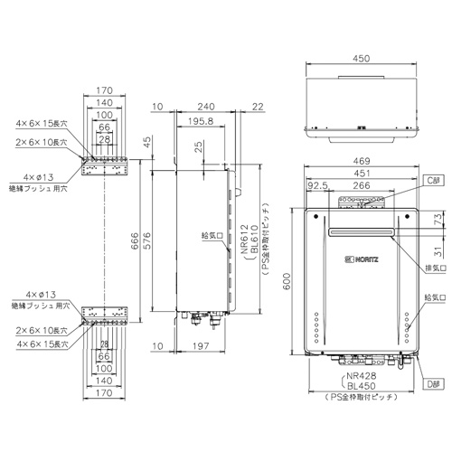 ガスふろ給湯器[浴室・台所リモコンセット][屋外壁掛型][シンプル][オート][24号][20A]