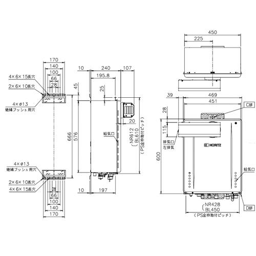 ガスふろ給湯器[エコジョーズ][浴室・台所リモコンセット][アルコーブ設置型][シンプル][オート][16号][15A]