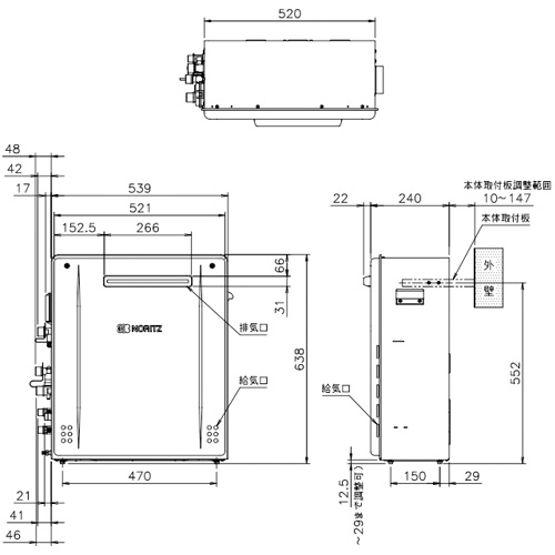 ・H638×W539×D240mm