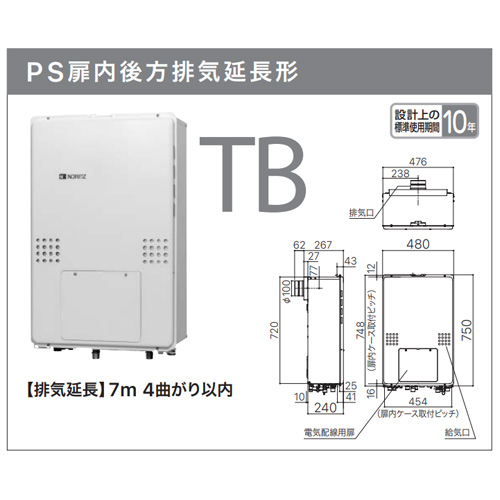 GTH-2454AW-TB-BL 13A|ノーリツ|熱源機[本体のみ][1温度][暖房能力14.0kW][PS扉内設置型][後方排気][延長可能][フルオート][24号][20A][都市ガス]|リフォームネクスト