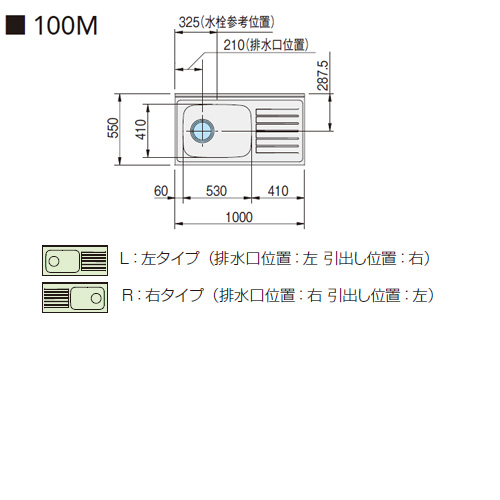 左タイプ(L) 排水位置:左/引出し位置:右