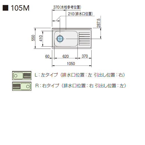 右タイプ(R) 排水位置:右/引出し位置:左
