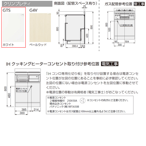 コンロ台[ビルトインコンロ専用][クリンプレティ][木製キャビネット][間口60cm][奥行55cm][配管スペース付き][ホワイト]