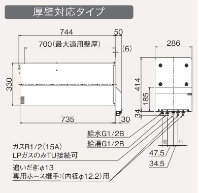 ガスふろ給湯器 バスイング[浴室リモコン付属][標準][外壁貫通設置型][壁厚対応][対応壁厚:700mm以下][8号]