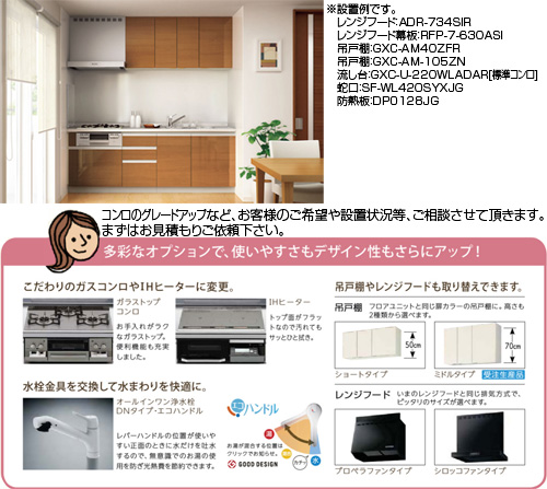 ・グレードアップ商品:IHコンロ3種(パナソニック製、日立製)、ガラストップガスコンロ3種(リンナイ製)