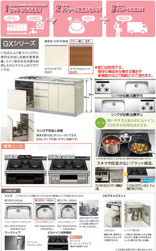 GXは、ホワイトゼブラ(GXI)とライトウォルナット(GXC)の扉カラー2種類ございます。