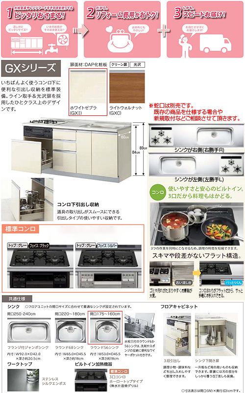 GXは、ホワイトゼブラ(GXI)とライトウォルナット(GXC)の扉カラー2種類ございます。