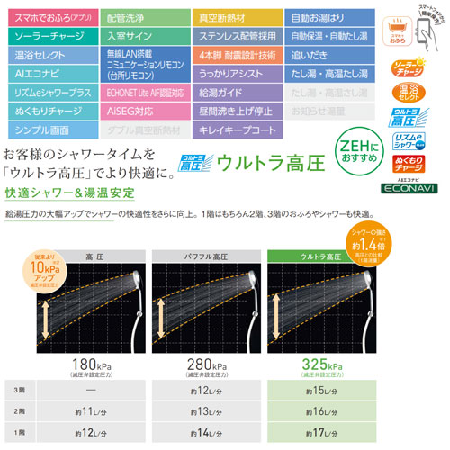 外気温がマイナス25度でも約80度までの高温沸き上げが可能です。
